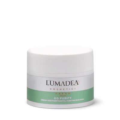 Fresh Go Purify is formulated with the exclusive Fresh Face complex: very pure COSMOS certified snail slime and beauty salad (organic hydrolyzed arugula and organic extracts of pumpkin and cucumber). Fresh Go Purify Purifying Face Cream is suitable for skin imperfections of the face, and helps to decrease the visibility of pores and purifies skin with excess sebum. Enriched with vegetable unsaponifiables, and a blend of salicylic acid derivatives with a normalizing and purifying sebum action.